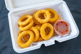 Crispy onion slices deep-fried until golden-brown.